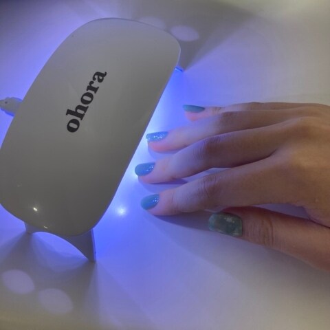 正直なところ「貼るだけ」って安っぽく見えちゃうのではと思っていたのですが、そんな心配は無用でした。そのクオリティの高さに驚き! ohoraのジェルネイルはジェルを60%固めた“セミキュアジェルネイル”というもの。ぷっくりとした立体感がしっかりでます。サイズが合うか心配でしたが、シールを少し伸ばして自分の爪にぴったりと合わせることができるのでとても自然な仕上がり。貼っている途中にズレたかなと思えば直せばOK。最後にLEDライトを照射することで、しっかり固まって固定されます。ポリッシュを塗って乾かす過程より待ち時間もなくノンストレス!