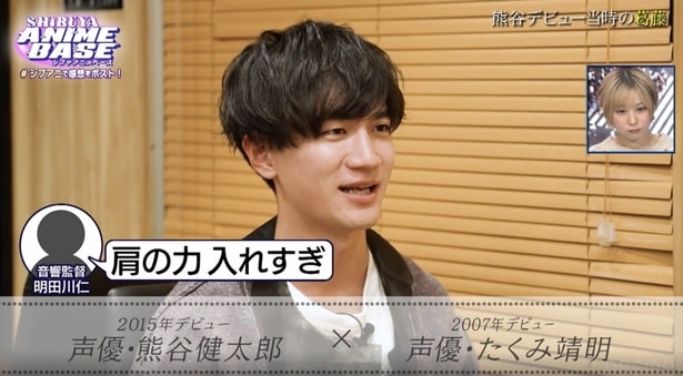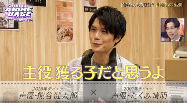 「SHIBUYA ANIME BASE」#シブアニ(毎週金曜夜9:00-10:00 ABEMAアニメチャンネル)の#68が11月28日に放送。声優のたくみ靖明と熊谷健太郎が、お互いの出会いなどを語った。