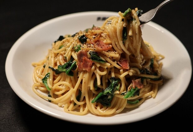 豆乳とチーズが味の決め手の、醤油ベースのタレで仕上げた和風カルボナーラ