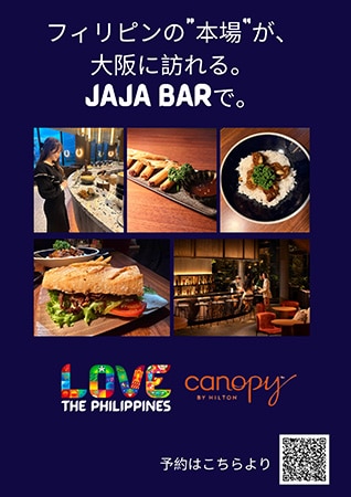 フィリピンで長く愛され続ける味を、モダンかつエレガントにアレンジした特別メニューを提供する。「JAJA BAR」のドリンクとフード、グラングリーン大阪の11階からの眺望と共に、フィリピンに浸るひとときを楽しめる。