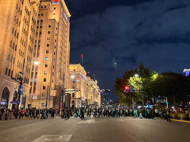 絶景を写真に収めるなら、南京路をまっすぐ黄浦江へ向かって歩き、歴史的建造物が並ぶ中山東一路の横断歩道を渡ったところにある遊歩道へ。
