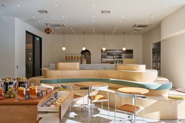 新店舗の店内には、有田の段々畑をモチーフにしたインテリアを取り入れ、有田の山々の斜面にみかん畑が連なるあの景色をそっと思い出せるような空間に仕上げている。大きな窓からは自然光がやさしく差し込み、みかんのオレンジ色がふわっと映える、あたたかい雰囲気が広がる。