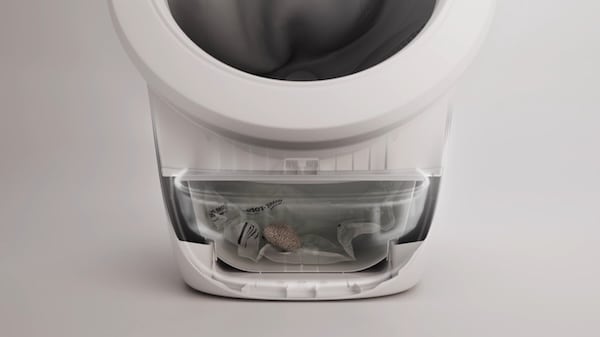 「Litter-Robot 4」は、猫がトイレを使用したあと、本体内部のセンサーが猫の退出を検知し、ドームがゆっくりと回転することで汚れた猫砂ときれいな砂を自動で分離する。汚れは密閉された廃棄ボックスに収納され、トイレ内部には常に清潔な砂が保たれる仕組みだ。これは猫砂の節約にも繋がる。