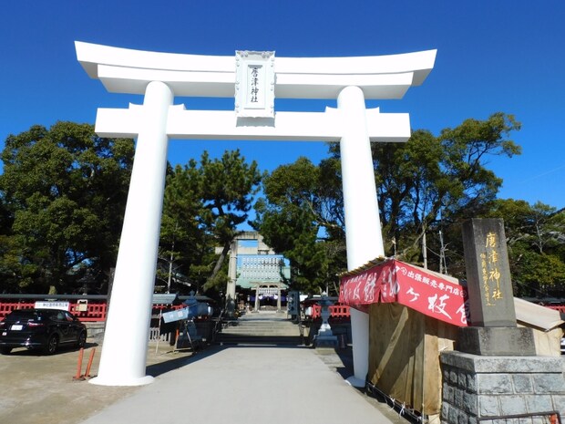 境内には源頼光が寄進したと伝わる鳥居や、豊臣秀吉が名護屋在陣の際に祈願したといわれる太閤石など、歴史を感じるスポットもあります。