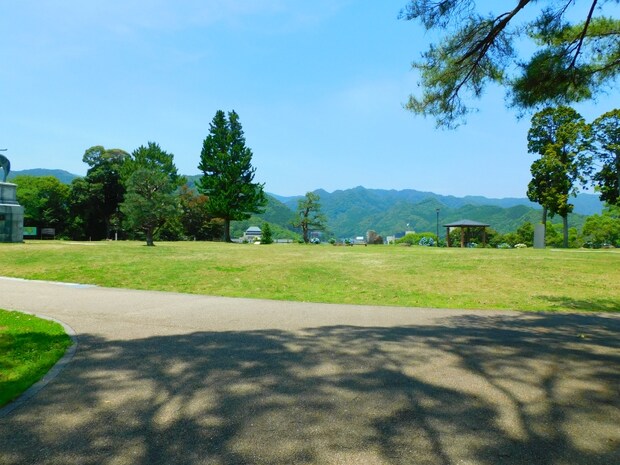 山口市の中心亀山に毛利秀元が築城しようとしていた長山城跡を整備した公園で、敷地内には県立の美術館や博物館、図書館やテニスコートなどがあり、山口市民の憩いの場となっています。