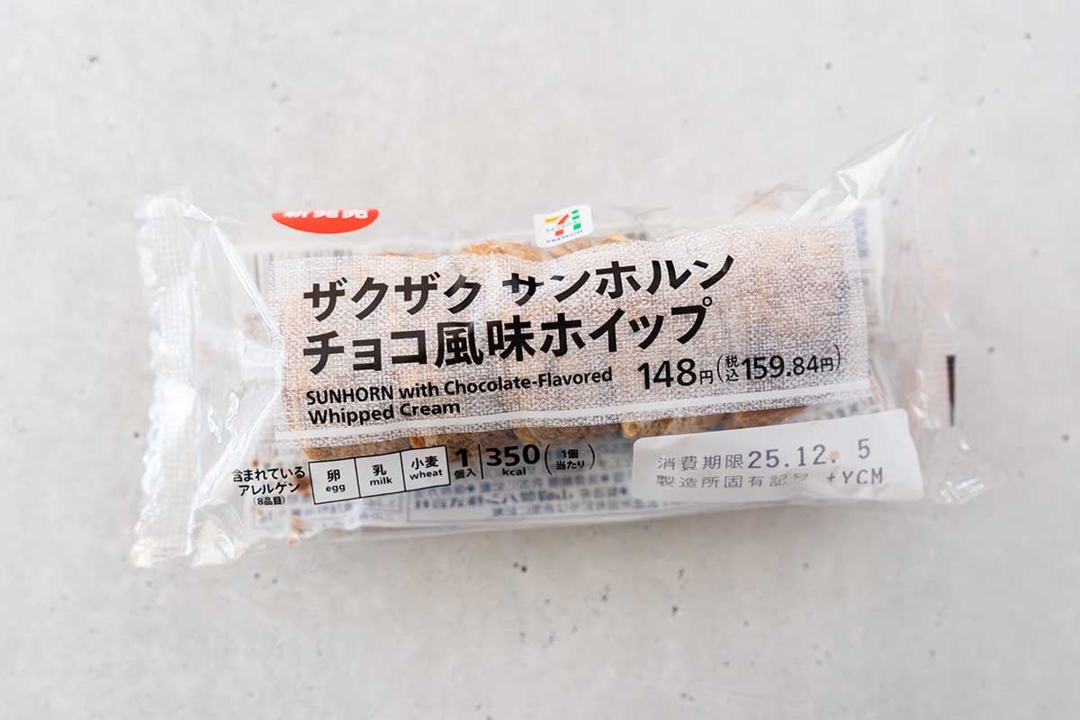 セブン-イレブンは2025年12月2日(火)に、「セブンプレミアム ザクザクサンホルン チョコ風味ホイップ」(税込159.84円)を発売しました。