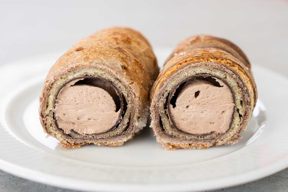 パイ生地は商品名のとおり、ザクッザクッとした心地よい食感に仕上がっていて、中のホイップはふんわりと滑らかな舌ざわりに。濃厚なチョコ味ではなく、ほどよくミルク感も楽しめるチョコ風味です。