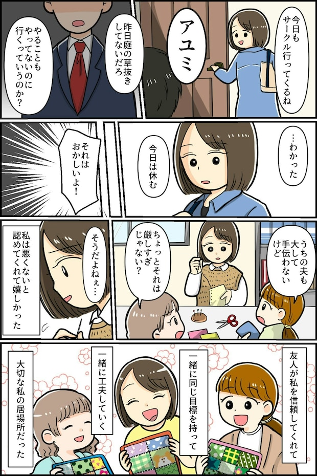 主人公がママ友に誘われ入会した裁縫サークルに、楽しそうに通っている姿が許せないようです…。