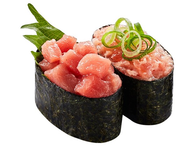 とろける食感の中とろと定番のねぎとろを合い盛りで提供する。