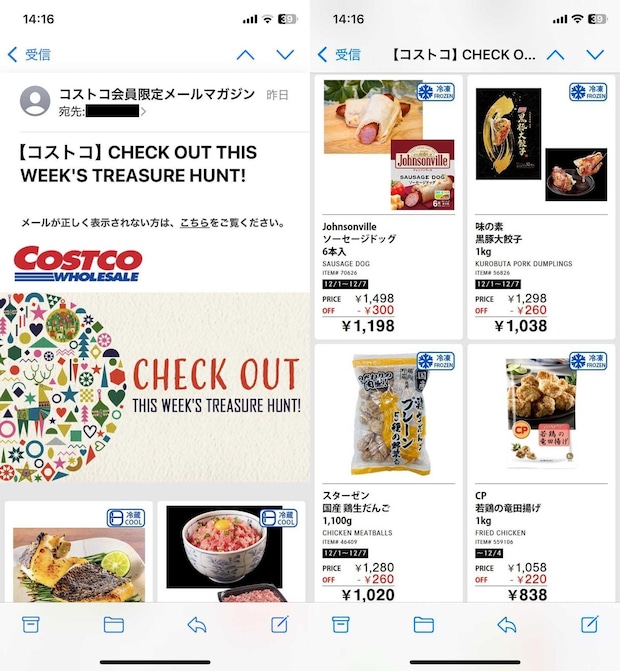 12/1~12/7のコストコセールは年末も近づいてきたということで、ストック需要に向けたセール商品が多くなっています。