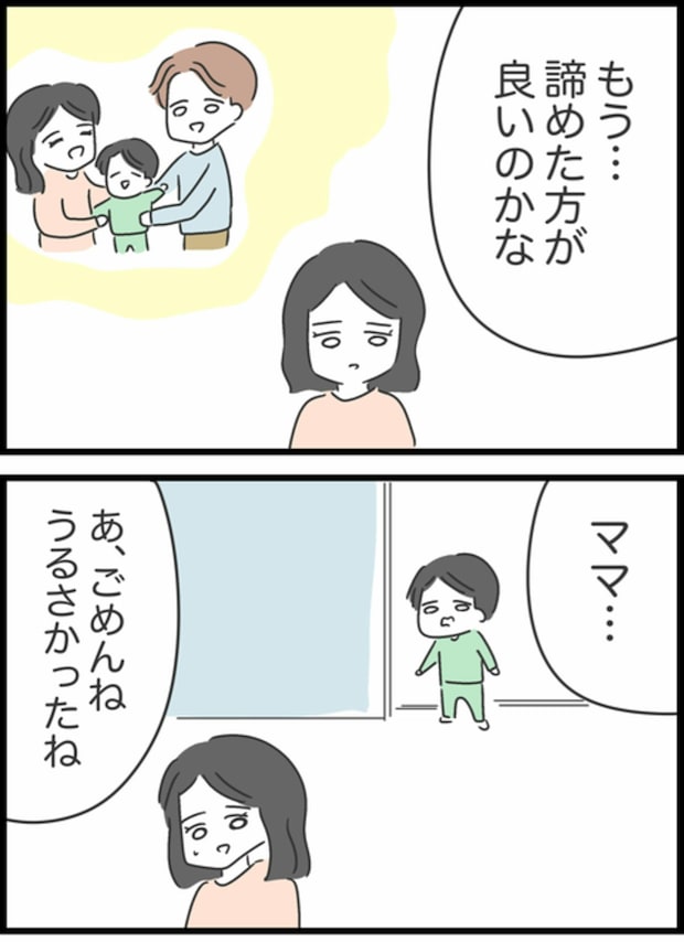「もう諦めた方がいいのかな…」と考えていたようこに、「ママ」とゆうたが声を掛けます。「パパは?」と言うゆうたに「パパ好き?」と聞くと…。