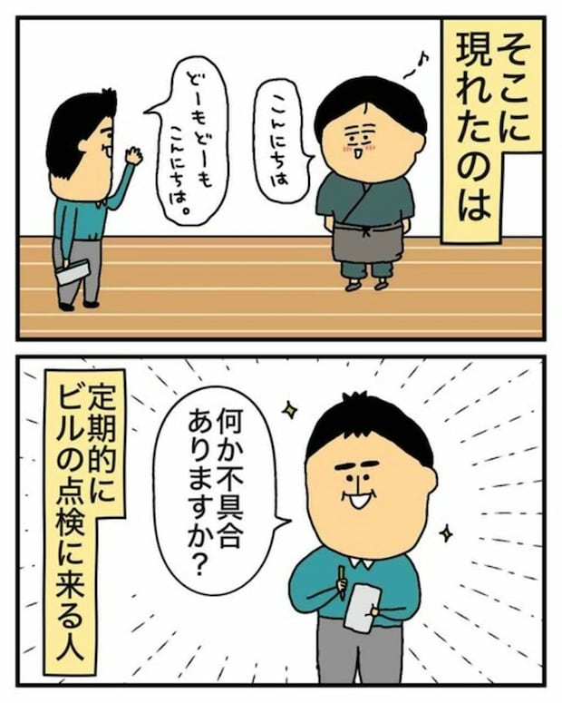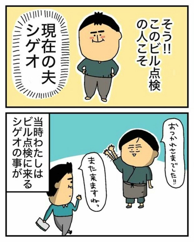 癒し系キャラのビルの点検員さんこそ、将来の夫シゲオさんでした。