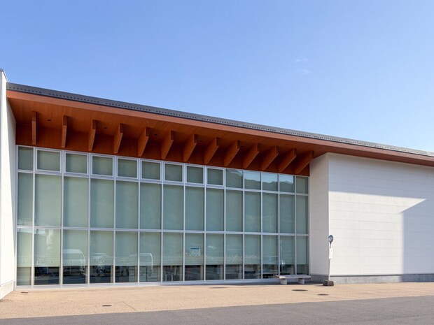 大きい窓があって開放的なガイダンス棟。青谷の人が作った道具や食生活の様子を中心に展示してあります。また豊富な体験メニューがあります。