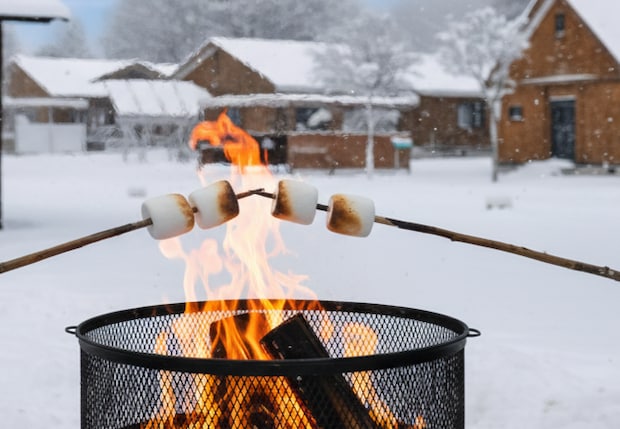 焚き火のあたたかさを感じながら、焼きマシュマロを楽しめる冬キャンプ体験(※有料) を提供。