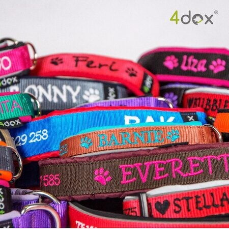 「4dox」では、パピーから大型犬まで、愛犬が引き立つ華やかで上品なカラーバリエーションを用意している。カラー選びやネーム入れなどで、世界にひとつだけのオリジナル商品を作ることができる。