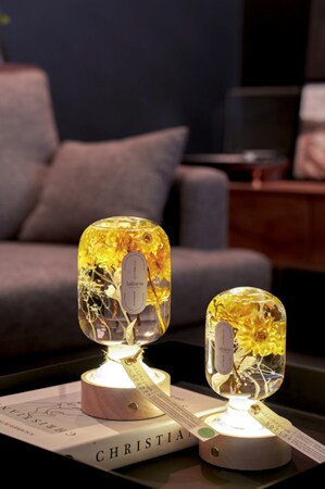 明かりを灯すと、やわらかな光が植物を包み込み、まるで“森のランプ”のような幻想的な時間を演出する。
