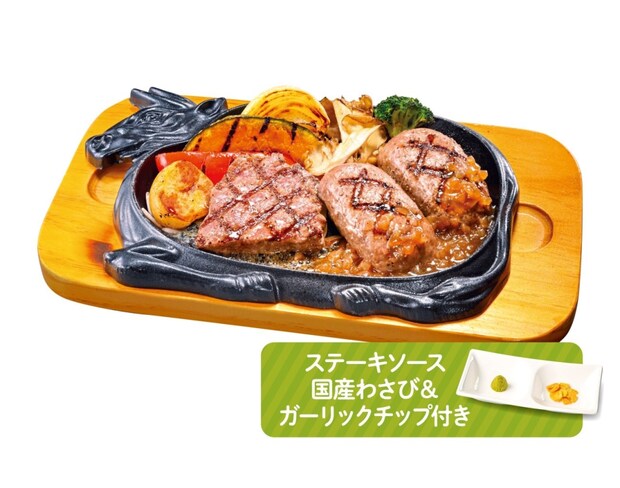 「黒毛和牛サーロイン(80g)&大俵ハンバーグ(200g)」