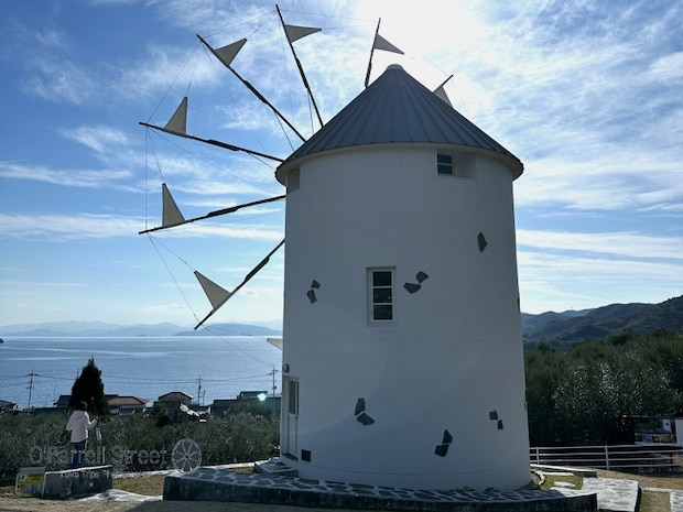フェリーで高松港から1時間で到着する小豆島にある道の駅です。オリーブ栽培・収穫の歴史などを知ることができるオリーブ記念館やレストラン、土産物を扱うショップがあります。オリーブ畑が広がる広大な敷地内には、白い風車や実写版映画『魔女の宅急便』のロケセットなどが点在しています。