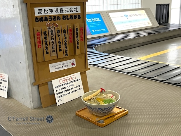 香川の旅の始まりから終わりまでを受け入れる高松空港でも、写真を撮りたいチェックポイントがいくつかあります。到着時に手荷物受取りのベルトコンベアでは、巨大なうどんの模型が回ってくると話題ですし、空港内では数か所にうどん出汁が出る蛇口があることでも有名です。出発ロビーには、うどんソファもあり、香川が「うどん県」であることを改めて再認識させられますね。