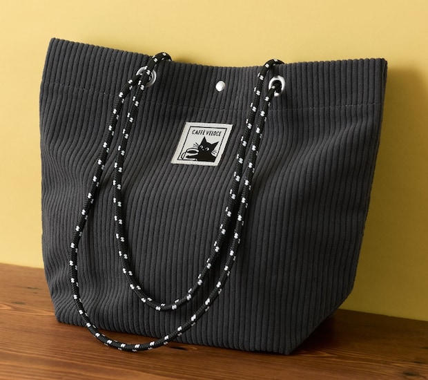 コーデュロイ素材を使ったトートバッグで、A4サイズのファイルも入るサイズ感。厚手の上着を着ていても肩掛けしやすいよう、肩ひもの長さにこだわった。色は「スモーキーブルー」「キャラメルブラウン」、オンライン限定色「シャノアールブラック」の3種類。