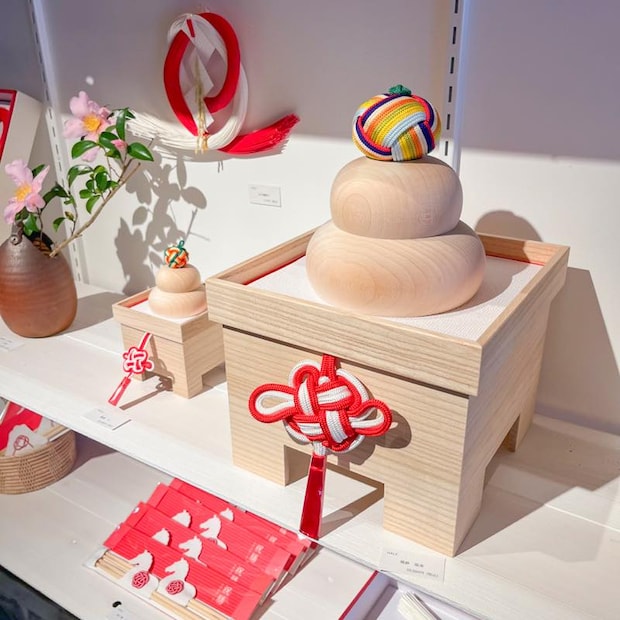 こちらは桐で作られた鏡餅、とてもおしゃれでインテリアとしても馴染みそうです。