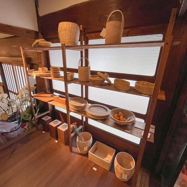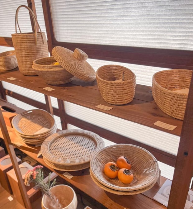 こちらは塩川さんいちおしの、カンボジアのラタン製品「フランジパニラタン」のコーナー。