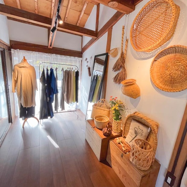 奥の部屋には、綿を使った衣料品がディスプレイされています。