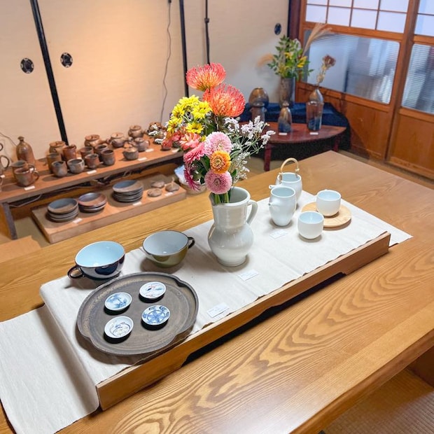 奥の和室には、伊万里焼や備前焼などの陶器がたくさん並んでいました。
