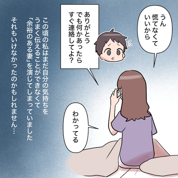 この頃の私は、まだ自分の気持ちをうまく伝えることができなくて「余裕のある妻」を演じてしまっていました。それもいけなかったのかもしれません・・。