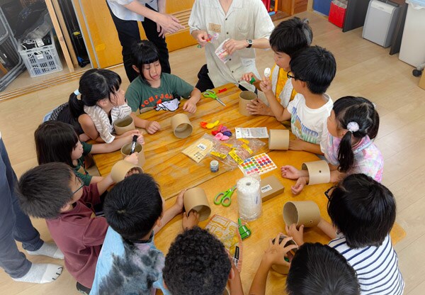 ワークショップでは、カプセル・シェーカー、牛乳パックカスタネット、筒太鼓などを作り、完成した楽器を使って合奏し、最後はアーティストと一緒にパレード演奏を楽しむ。音の仕組みを体感しながら世界にひとつだけの音をつくる体験は、表現の楽しさに出会うきっかけにもなる。