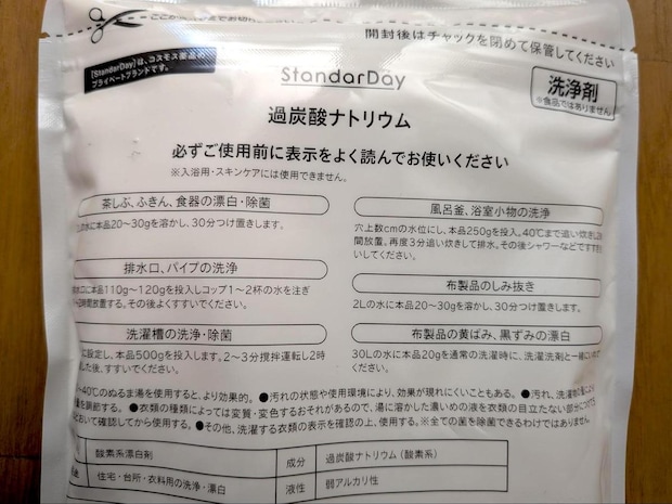 今回試した「StandarDay」の「過炭酸ナトリウム」。