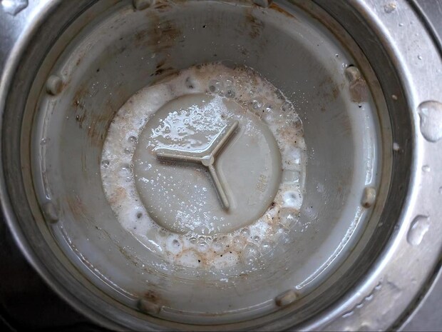 水を捨てて、軽くこすってしあげたら、ご覧の通り漂白されてすっきり♪