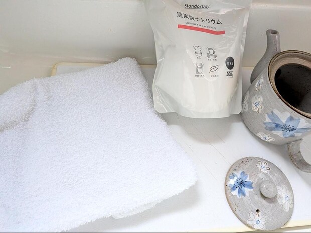 急須の茶渋は落ち、まな板もタオルもびっくりするほど真っ白に!