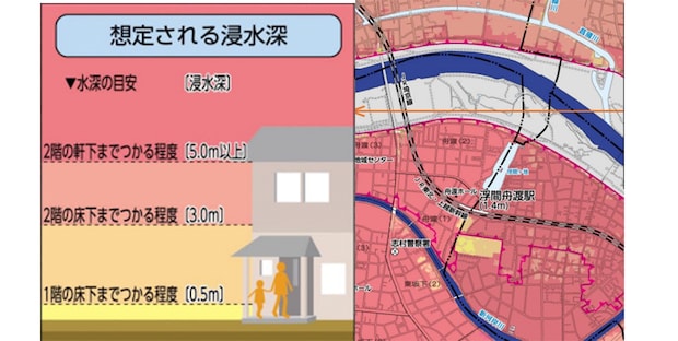 付近の川が氾濫した場合、周辺浸水想定は2〜5mにもなるとされ、地名とハザードマップの情報が重なり合う例でもあります。