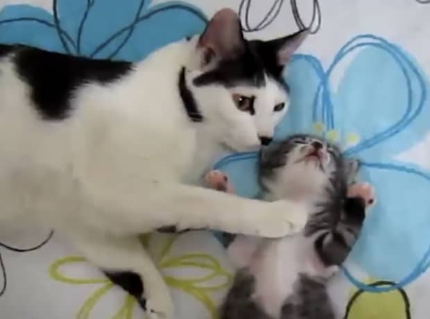 お腹を丸出しで、仰向けに寝る子猫のことが