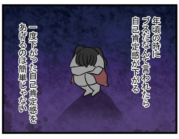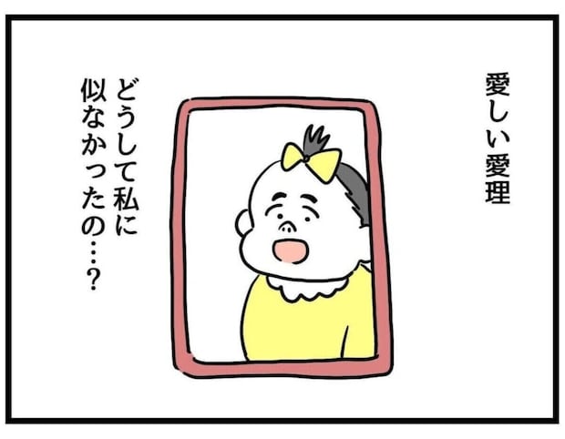 児童館で会った同じ月齢の子たちがあまりにもかわいかったため、つい娘の愛理と容姿を比べて落ち込んでしまったゆうみ。かわいくないと人生が大変だ、容姿が愛理の呪いになるとまで考えてしまいます。さらに、夫に似たせいだと夫を責める方向へと考えていってしまいます。
