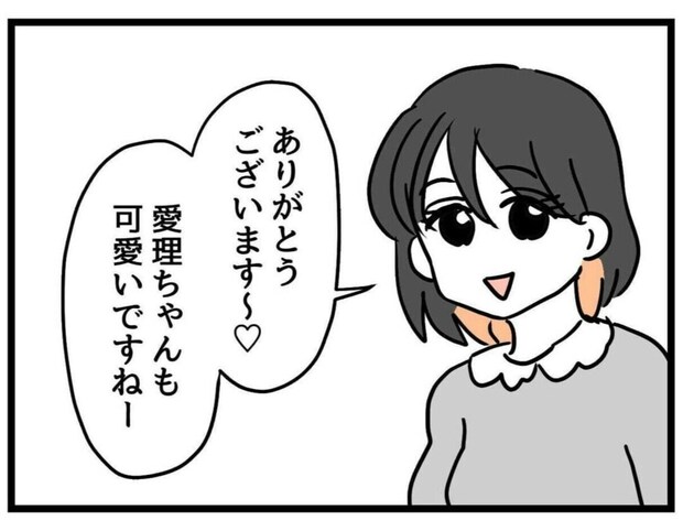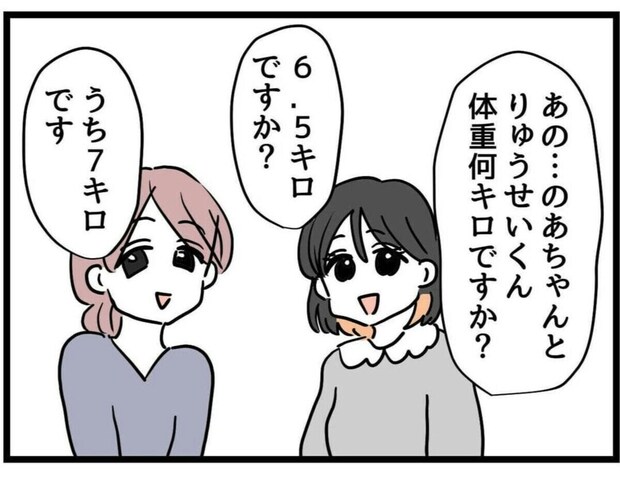 ママ友に「愛理ちゃんもかわいいですね」と言われたことですっかり上機嫌になったゆうみ。傷ついていた自尊心もすっかり復活したようですね。しかし、ふとママ友の子と並ぶ愛理が一回り大きいことに気付きます。2人の体重を聞くと愛理よりも軽く、思わず「デブ女とか絶対無理…」と真っ青に。