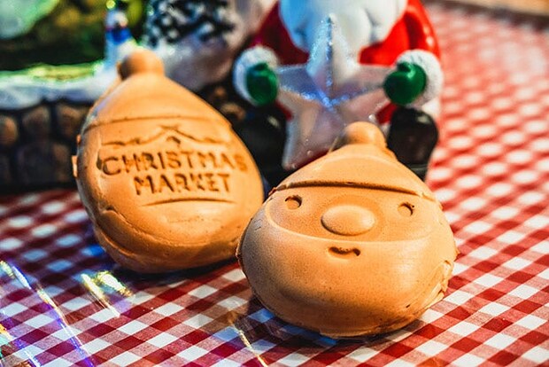 注目のグルメひとつ目は、「クリスマスアドベント」公式キャラクター「さんちゃん」の人形焼き。毎年福岡で行列ができるほど人気なのだそう。