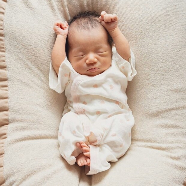 小さな手に小さな足。全てが小さくて「尊い」という言葉がぴったりなかわいい赤ちゃん。ママのおなかから出てきてまだ5日目で、すでにぷんぷんポーズが完璧です。