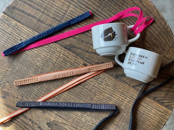 「川越コーヒーフェス オリジナルマグ」と「momijiコラボTASUKIストラップ」