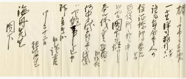 ボストン大学に留学した若者がアメリカから海舟に宛てた手紙