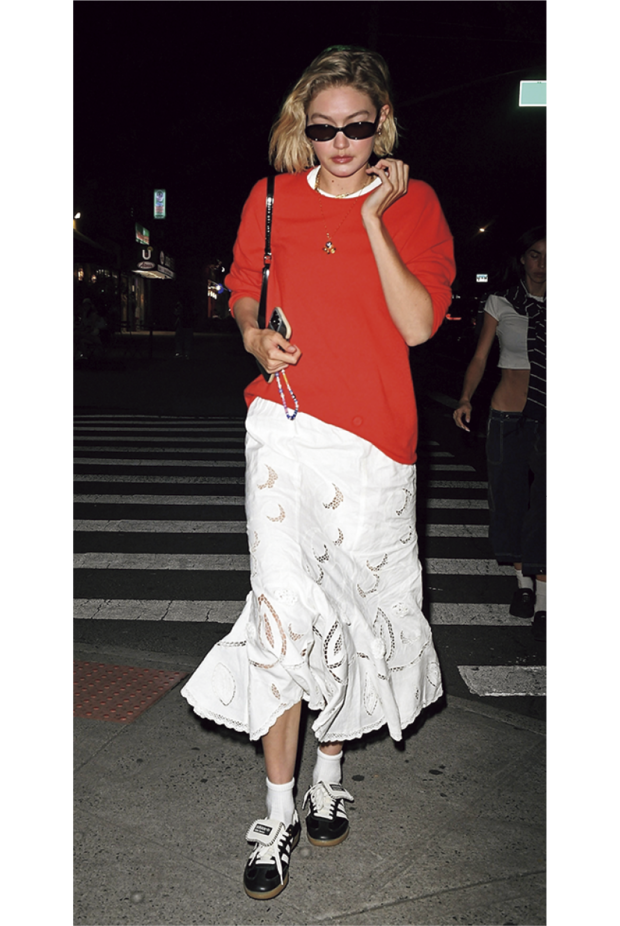 スポーティMIXや黒レザーで、王道ホワイトの甘さをクールダウンした着こなしが目立ったレース。シアーな質感をうまく生かしてモード寄りに仕上げて。