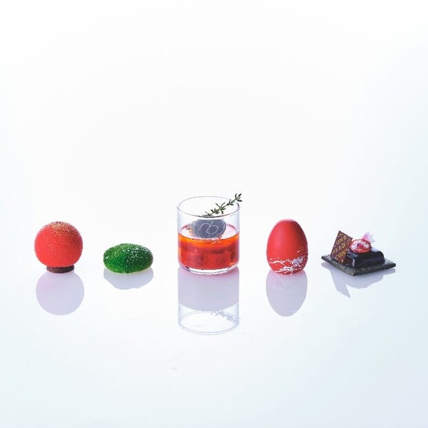 スイーツには、ニコライ バーグマンのアイコニックな黒のフラワーボックスからインスパイアされた、ストロベリーチョコレートとジャスミンが香る「ベルベットノワール」や、ニコライ バーグマンならではの半球体のフラワーアレンジメントがストロベリームースで表現された「ルビーフラワー」を用意。