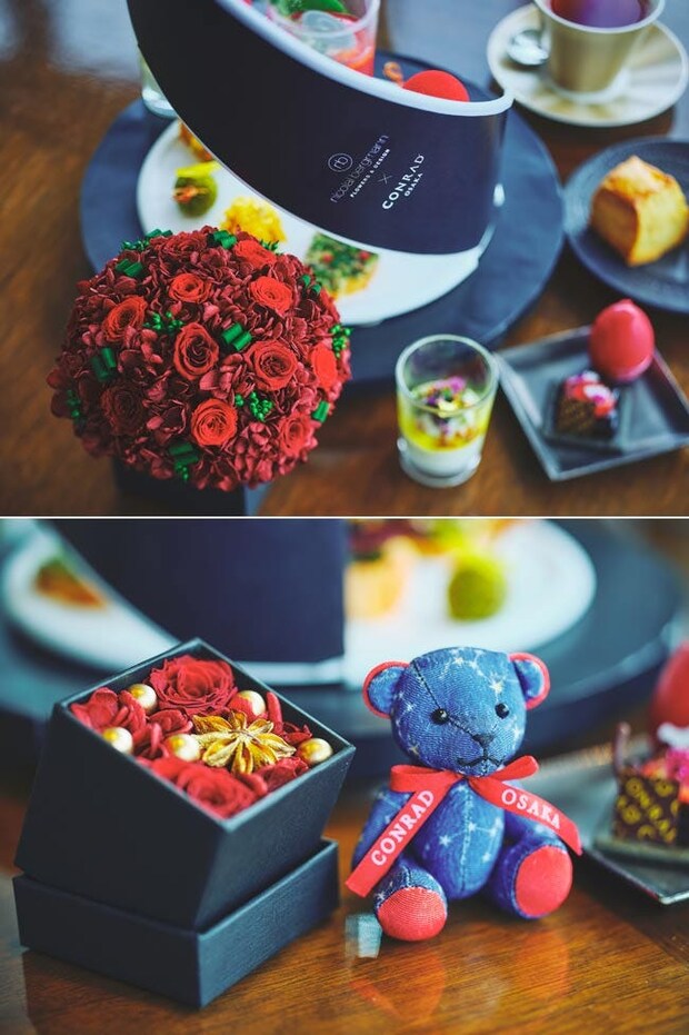 さらに数量限定で、自宅でも楽しめるプリザーブドフラワーボックスと、コンラッドホリデーベアが付いたプランも登場。今年の特別なホリデーシーズンを、心ときめく限定アイテムで彩ってみてはいかが。