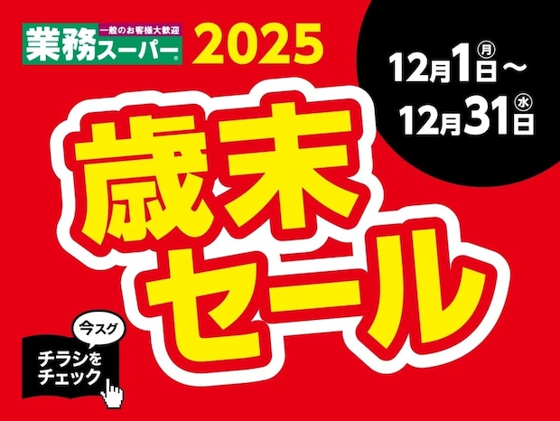 業務スーパーの歳末セールは、2025年12月1日(月)〜12月31日(水)まで開催されているようです!