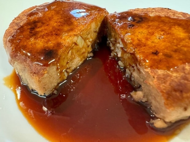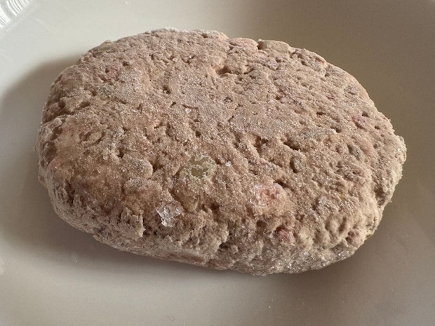 取り出した見た目は他のハンバーグと大きな違いはありませんが、カットしてみるとつくね特有の身が詰まった感じが伝わってきました!