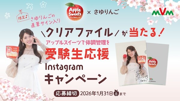 受験生応援 アップルスイーツで体調管理をキャンペーン 特設サイト:https://mvm.co.jp/campaign/jukenouen