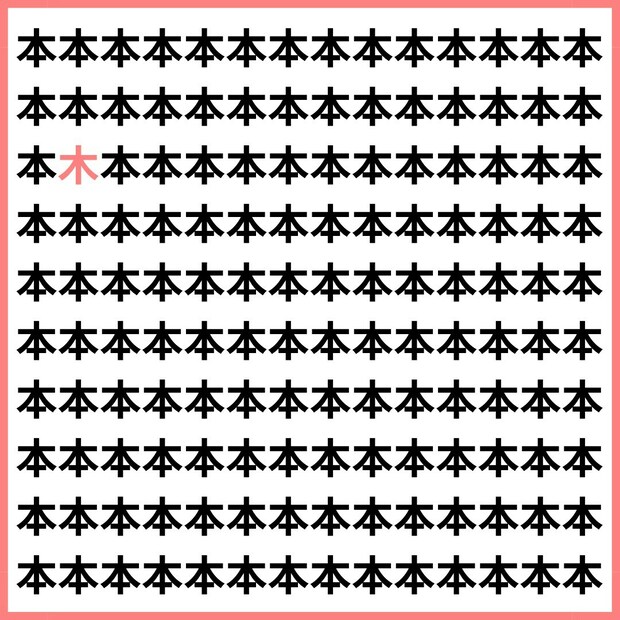 たくさんの「本」の中に、1文字だけ違う漢字が混ざっています。