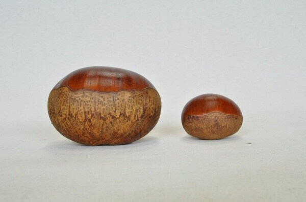 地域の魅力ある素材の中でもひときわ人気を集めるのが、2023年に87gを記録し、写真右の全国平均サイズの一粒20~25gに比べると、大きくて甘い「しまんと地栗」。半世紀前には年間500t以上とれていたという四万十の栗は、農家の高齢化と担い手不足などの影響で、現在は約30tまでに激減しているそう。