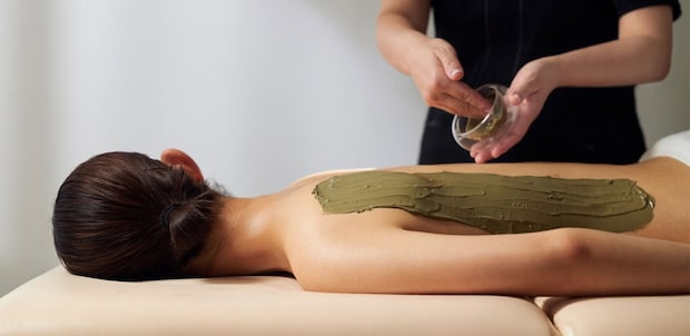 ティンシャの優しい音色を聴きながら入るフットバスはまるで瞑想。好きな香りのアロマオイルをセレクトしたら、ゆっくりと全身をオイルマッサージ、さらに、よりマッサージ効果の持続とデトックス効果があるといわれている泥パックをし、日ごろのむくみとガチガチボディをゆっくりとほどいていただきました。あまりにも心地よいゴッドハンドに、途中眠りに落ちてしまい、最後のほうは記憶が……。ただ終わった後のからだの軽さ、何より、施術前にお手洗いを済ませたにもかかわらず、フェイシャルの前にも再びお手洗いタイムをいただくことになるくらい、巡りがよくなったのを実感。